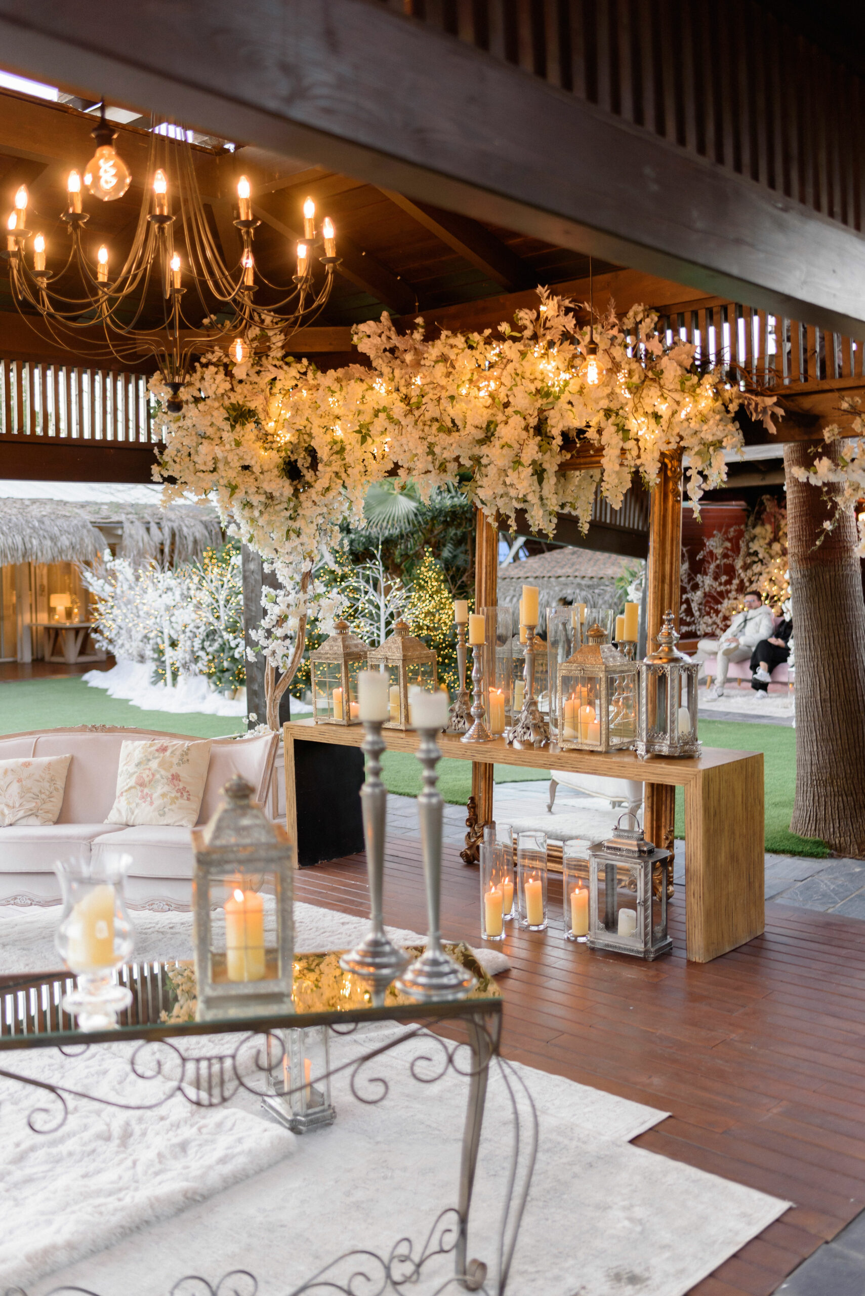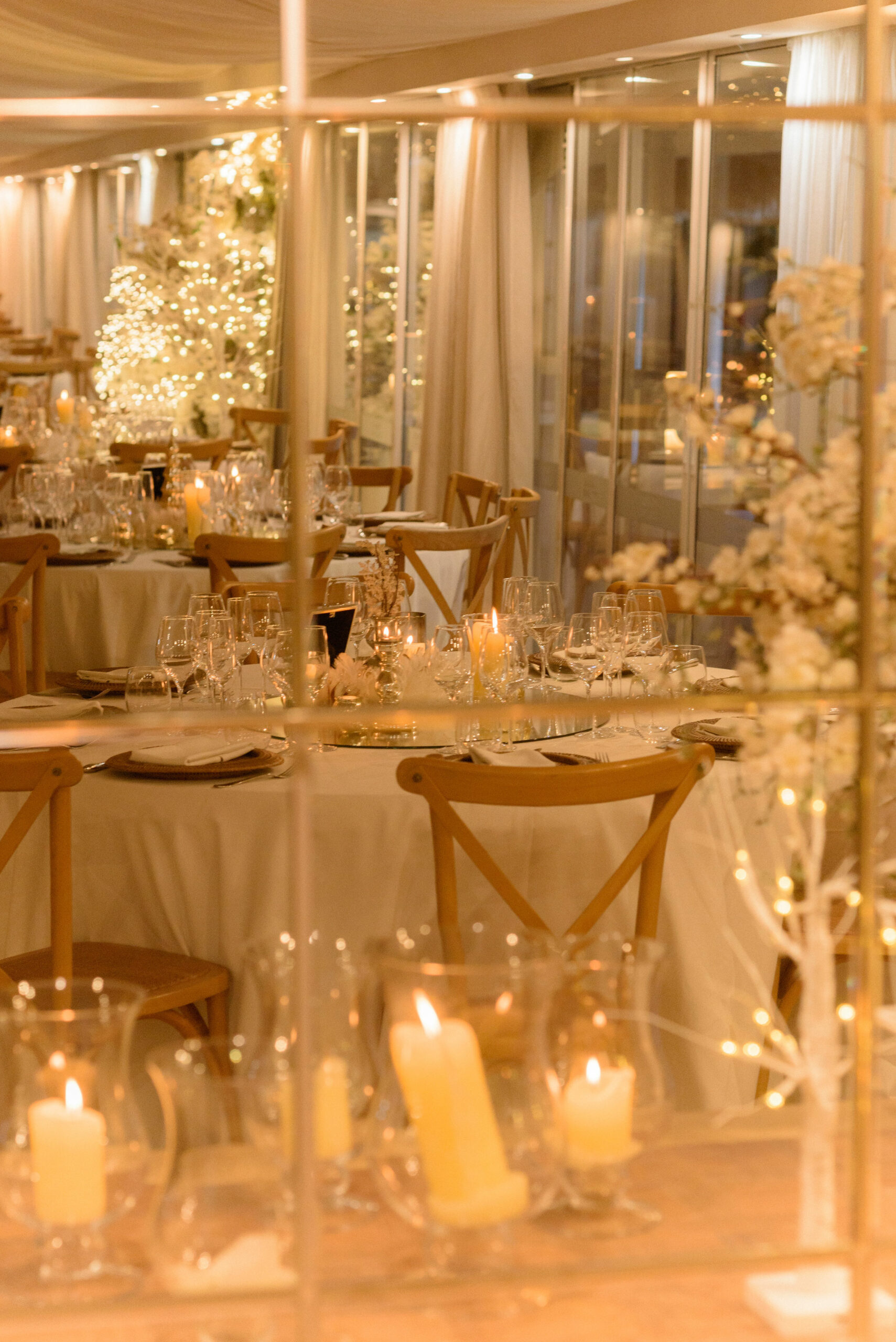 Un cuento de hadas hecho realidad, con decoraciones en blanco y dorado, nieve artificial y una luz cálida que envuelve cada instante en una sensación de magia y exclusividad.